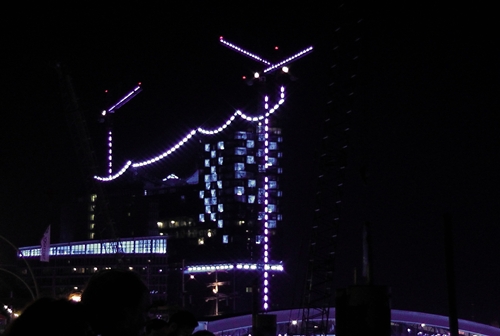 Die Elbphilharmonie samt Baukränen erleuchtete blau.