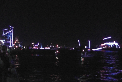 Anlässlich des Hafenfestes wurde der Hafen in blaues Licht getaucht. Teil der Installation waren auch die umliegenden Gebäude wie die Elbphilharmonie oder das Musicalzelt.